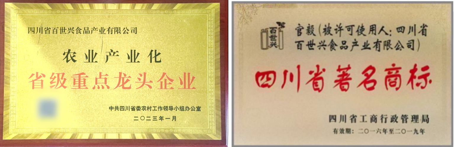 品牌經(jīng)過多年發(fā)展與沉淀,先后榮獲“省級重點龍頭企業(yè)”“四川省著名商標”稱號等權(quán)威認證。