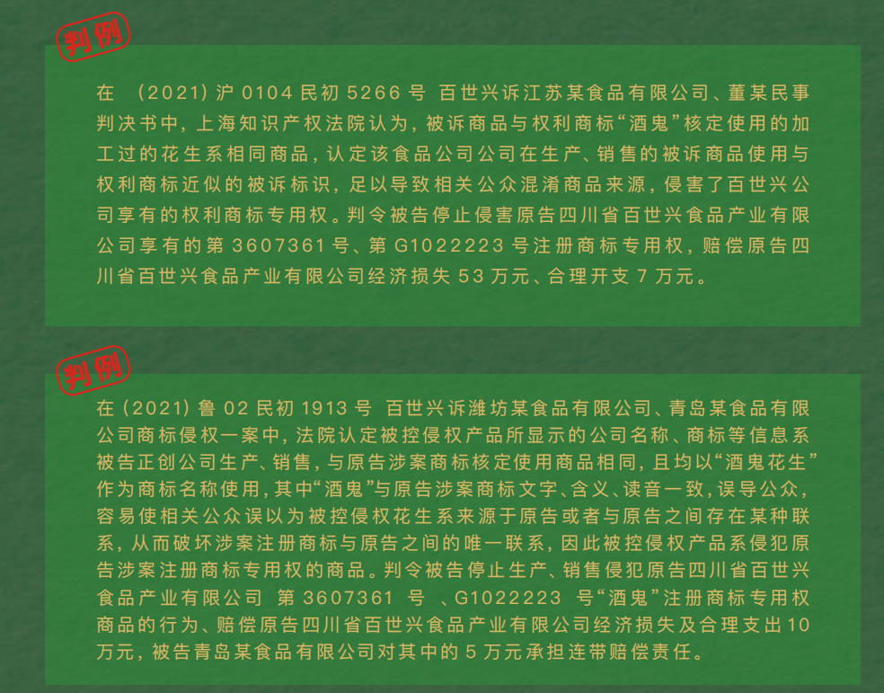 然而,隨著品牌影響力的擴大,市場上涌現(xiàn)出大量仿冒品,仿佛只要是“油炸花生”,就能叫作“酒鬼花生”。作為酒鬼花生品類開創(chuàng)者與唯一商標持有者,百世興近年來開始發(fā)起“正本清源”行動,主張以法律手段捍衛(wèi)消費者權(quán)益,同時向社會展示“一顆正宗酒鬼花生”的誕生密碼---只此一家,無法仿冒。